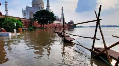‘ताजमहल’ बना ‘जलमहल’: यमुना का पानी ऐतिहासिक धरोहर तक पहुंचा, पर्यटक परेशान