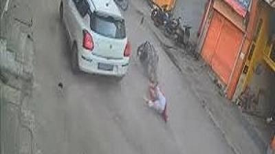 टक्कर के बाद उछलकर दूर जा गिरा युवक, मौके पर मची अफरा-तफरी