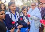 परीक्षा का पहला दिन: परीक्षार्थियों को टीका लगाकर दी गई शुभकामनाएं