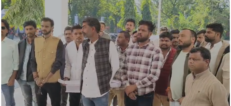 सागर: करणी सैनिकों ने एसपी कार्यालय के बाहर कीर्तन कर जताया विरोध