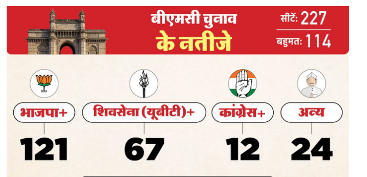 मुंबई। बीएमसी समेत महाराष्ट्र के 29 महानगरपालिकाओं के चुनाव 15 जनवरी को संपन्न हुए और नतीजे आज यानी 16 को घोषित किए जा रहे हैं, जिसके लिए रुझान सामने आने लगे हैं। शुरुआती रुझानों में भाजपा बीएमसी समेत कई नगरपालिकाओं में आगे चल रही है।