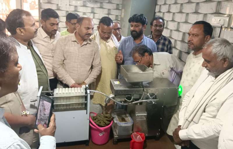 रायपुर : छत्तीसगढ़ तेलघानी विकास बोर्ड के अध्यक्ष जितेन्द्र साहू ने आज रायपुर स्थित साहू समाज के कार्यालय कृष्णाधाम परिसर में स्थापित तेलघानी मशीन का निरीक्षण किया। इस अवसर पर उन्होंने मशीन की तकनीकी कार्यप्रणाली, तिलहन प्रसंस्करण की प्रक्रिया तथा विपणन (मार्केटिंग) के तौर-तरीकों को गंभीरतापूर्वक समझा। निरीक्षण के पश्चात साहू ने इसे किसानों और बेरोजगार युवाओं के लिए एक अभिनव रोजगार माध्यम बताया।