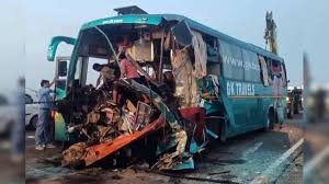 टूरिस्ट बस-डंपर टक्कर, खिड़की तोड़कर 57 को बचाया गया