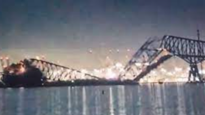 अमेरिका के मैरीलैंड में जहाज टकराने से ब्रिज ढहा