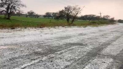 नीमच के खेतों में ओले गिरे, सफेद चादर बिछी, अफीम और अन्य फसलों की तबाही