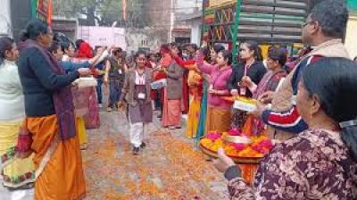 परीक्षा का पहला दिन: परीक्षार्थियों को टीका लगाकर दी गई शुभकामनाएं