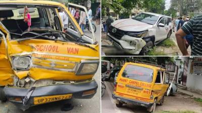 लखनऊ में सड़क हादसे ने मचाई दहशत, तेज रफ्तार SUV ने स्कूली वैन को मारी टक्कर, रोते-बिलखते बच्चे निकाले गए
