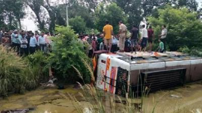 कानपुर में बड़ा सड़क हादसा, स्कूल बस ने बाइक को मारी टक्कर, खाई में पलटने से पिता-पुत्र की मौत, बेटी ICU में